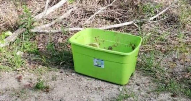 When a resident of Anson County, North Carolina, was out in April 2019, they noticed something odd. Sitting amongst the broken branches and dusty ground on the edge of some woods, was a bright green plastic bin. It looked completely out of place, so they took a closer look.