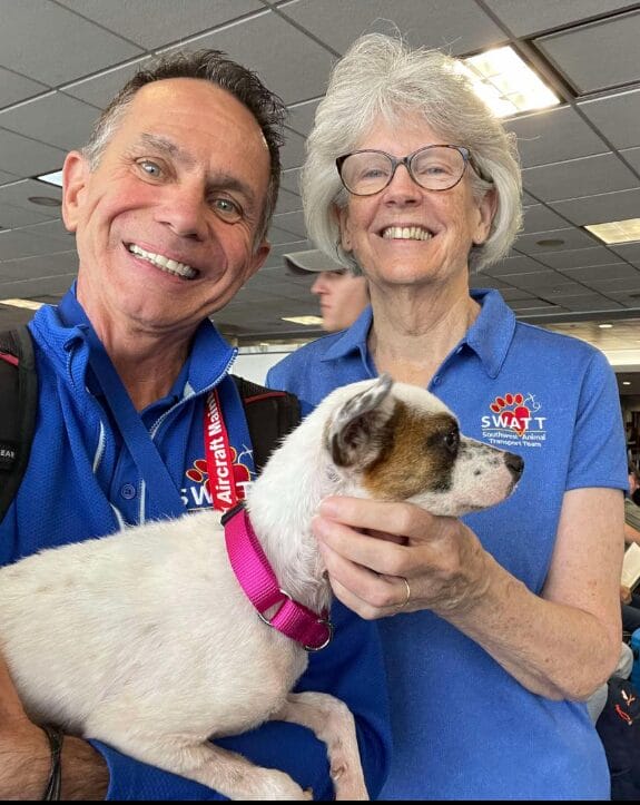 “She had adoption interest early on from a family in NY and she recently flew to them with the assistance of two flight angels at SWATT Transport! She landed safe & sound and it was easy to spot her family when she arrived (see their precious sign).”