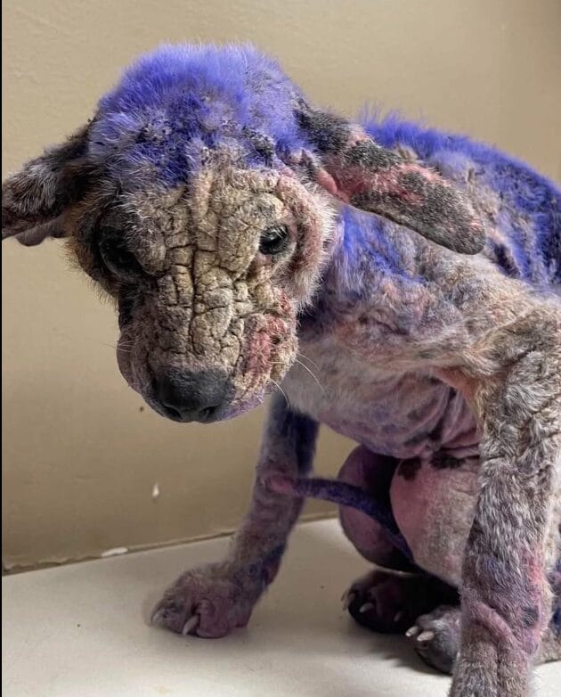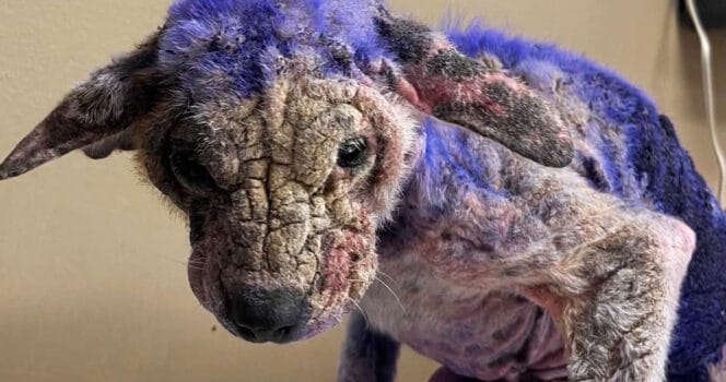 Veterinarians later determined that the purple coating was likely an antiseptic meant for livestock, possibly used in a desperate attempt to treat a severe case of mange.