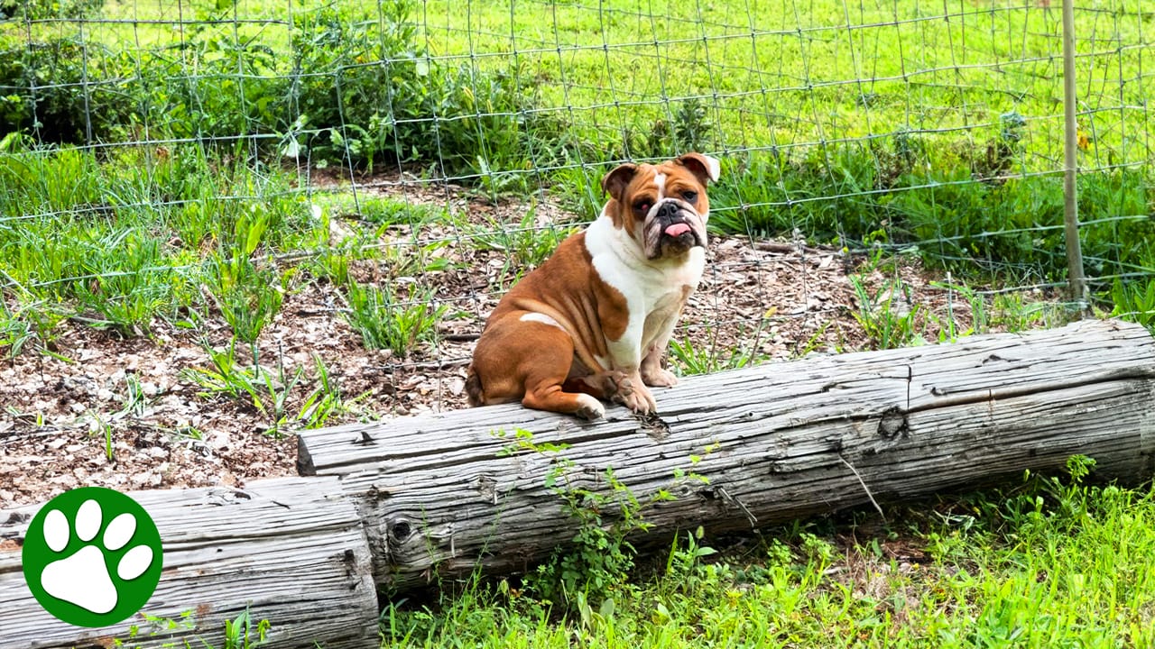 Abandoned Bulldog shows up on farm and asks for help