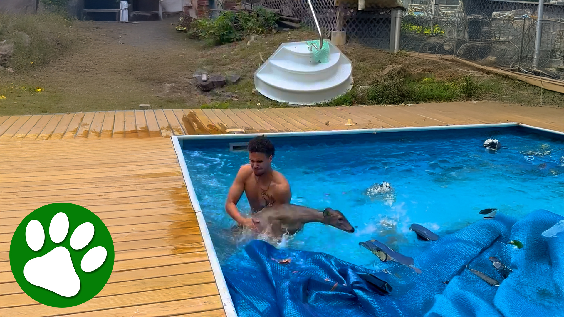 Brave Man Jumps Into Pool To Save Panicked Deer