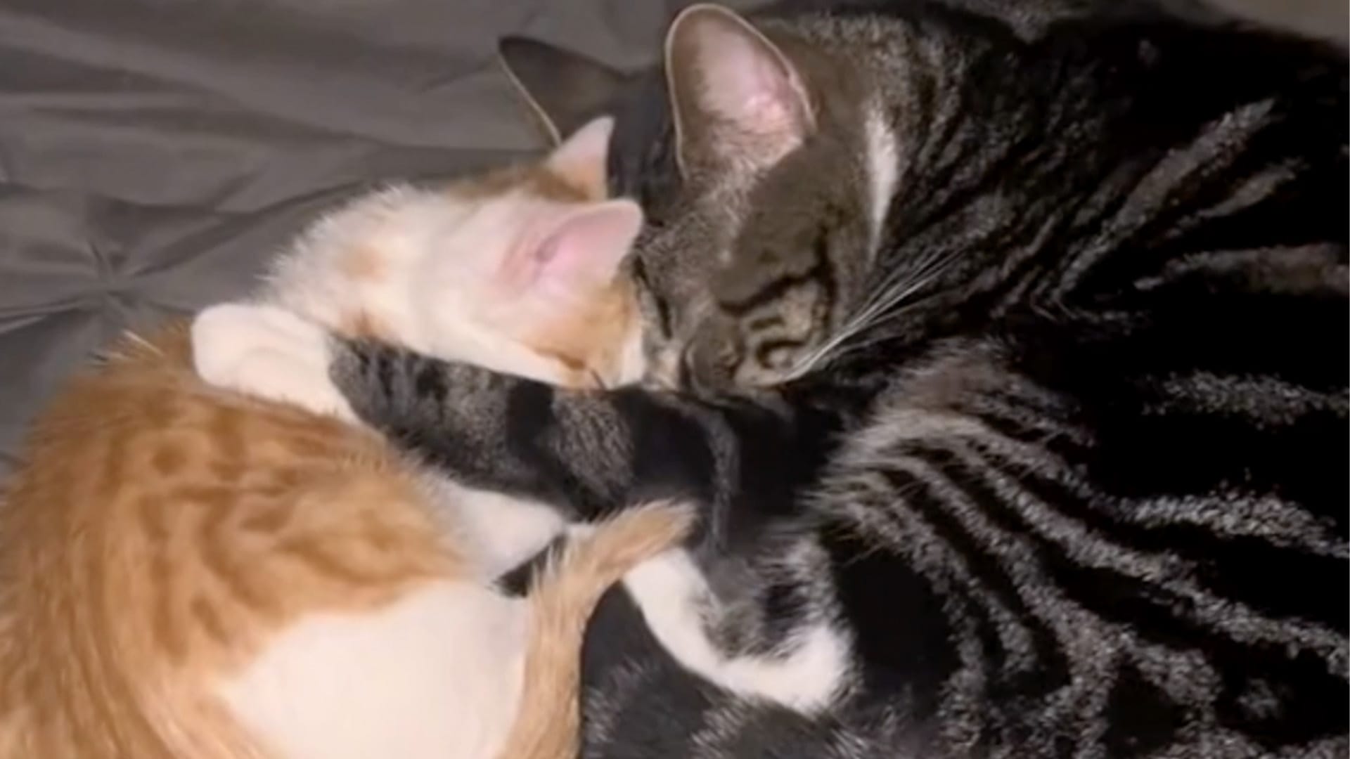 Cat learns to love her new homeless brother