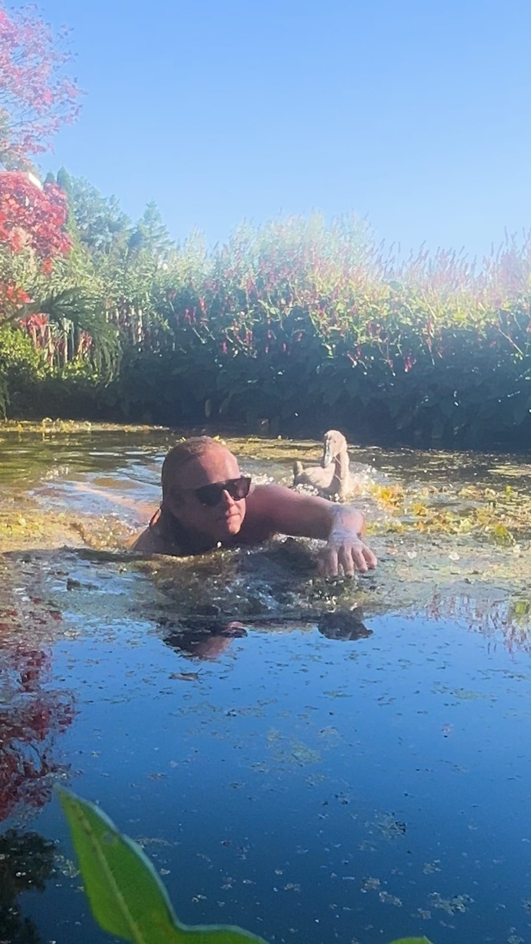 Man Swims With Rescued Baby Swan The moment this little one hatched, he had no clue what awaited ❤️ @jips.adventuree